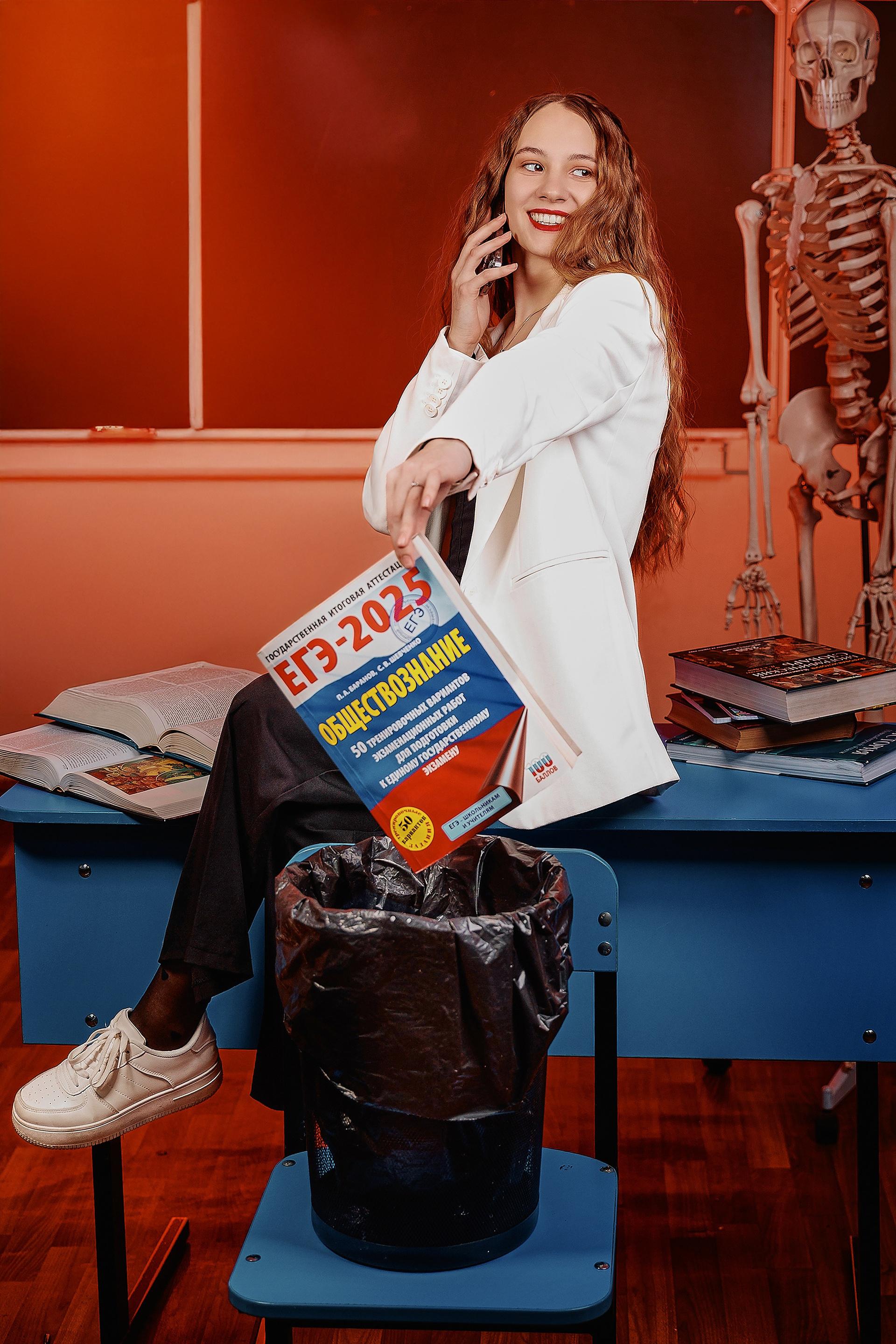 Съёмка проходит в школе или в фотостудии. Если в школе — стоимость указана на сайте, вы выбираете любую фотостудию в городе. С подбором студии я помогу!